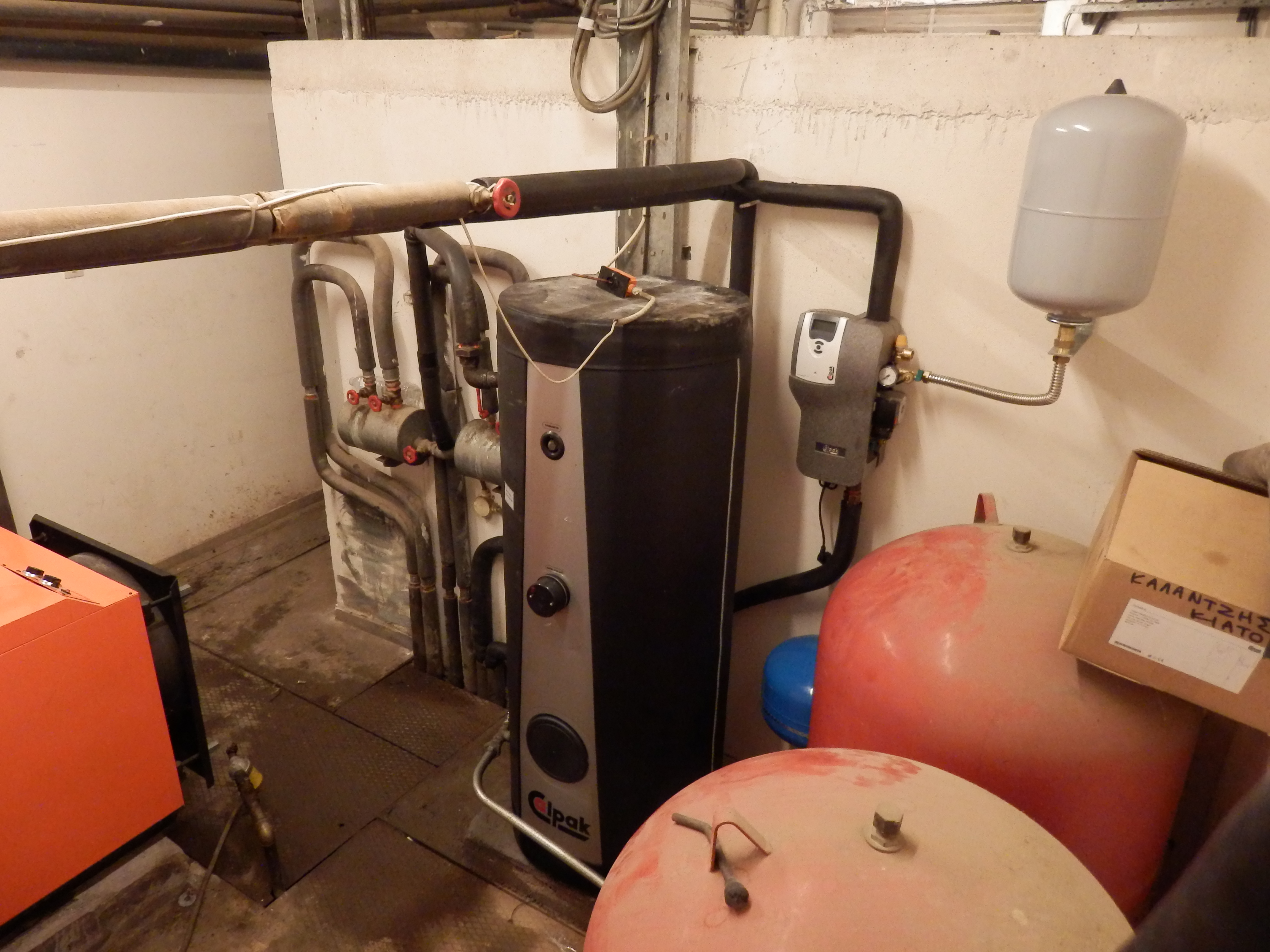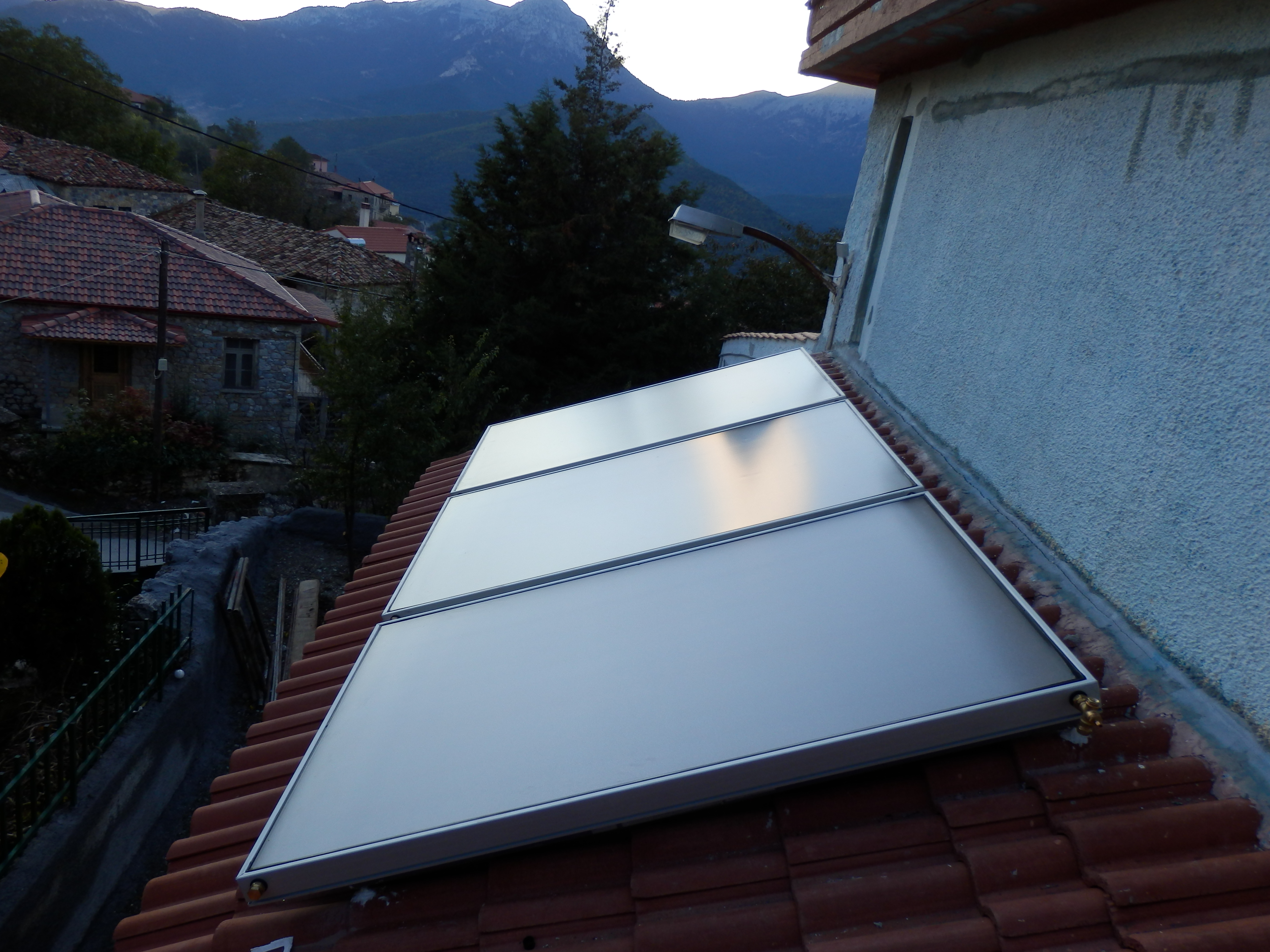 Για την θέρμανση του κτιρίου και την κάλυψη των αναγκών σε ζεστό νερό χρήσης αντικαταστάθηκε το υπάρχον σύστημα βεβιασμένης κυκλοφορίας και ο λέβητας . Για την πλήρη κάλυψη των αναγκών εγκαταστάθηκε δεξαμενή Calpak 200lt και δημιουργήθηκε συστοιχία τριών επιλεκτικών συλλεκτών ωφέλιμης επιφάνειας 2.1 m² έκαστος τοποθετημένοι στην νότια όψη του κτιρίου πάνω στην κεραμοσκεπή. Το σύστημα βεβιασμένης κυκλοφορίας συνδέθηκε με καινούριο λέβητα πετρελαίου 80.000 kcal/h υψηλού βαθμού απόδοσης.